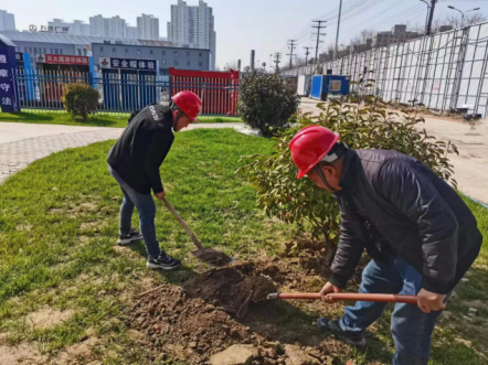 第一分公司紫郡府項(xiàng)目部為學(xué)習(xí)貫徹公司《環(huán)境保護(hù)和節(jié)能減排管理辦法》,樹(shù)牢安全施工、綠色施工理念。在植樹(shù)節(jié)來(lái)臨之際,為美化、凈化工作環(huán)境,增強(qiáng)團(tuán)結(jié)互助意識(shí),項(xiàng)目黨員及班子成員帶頭開(kāi)展植樹(shù)活動(dòng)。