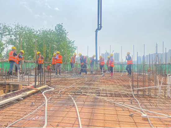 安徽建工二建第四分公司肥西FX202234號地塊項目位于合肥市經(jīng)開區(qū)丹霞路北側(cè),青龍?zhí)堵肺鱾?cè),施工面積約21萬余平方米,規(guī)劃建設(shè)17棟住宅樓。為順利完成節(jié)點目標,肥西FX202234號地塊項目在“五一”勞動節(jié)期間,員工放棄休假,奮戰(zhàn)在生產(chǎn)一線,圍繞安全、質(zhì)量、環(huán)保、關(guān)鍵工序和過程監(jiān)控等多個環(huán)節(jié),項目部嚴格按照設(shè)計文件、圖紙和規(guī)范進行施工。目前,肥西項目通過快速穿插施工,全速推進G2#地庫頂板、G5#樓地庫筏板、G7#樓基槽等分部節(jié)點任務(wù)。