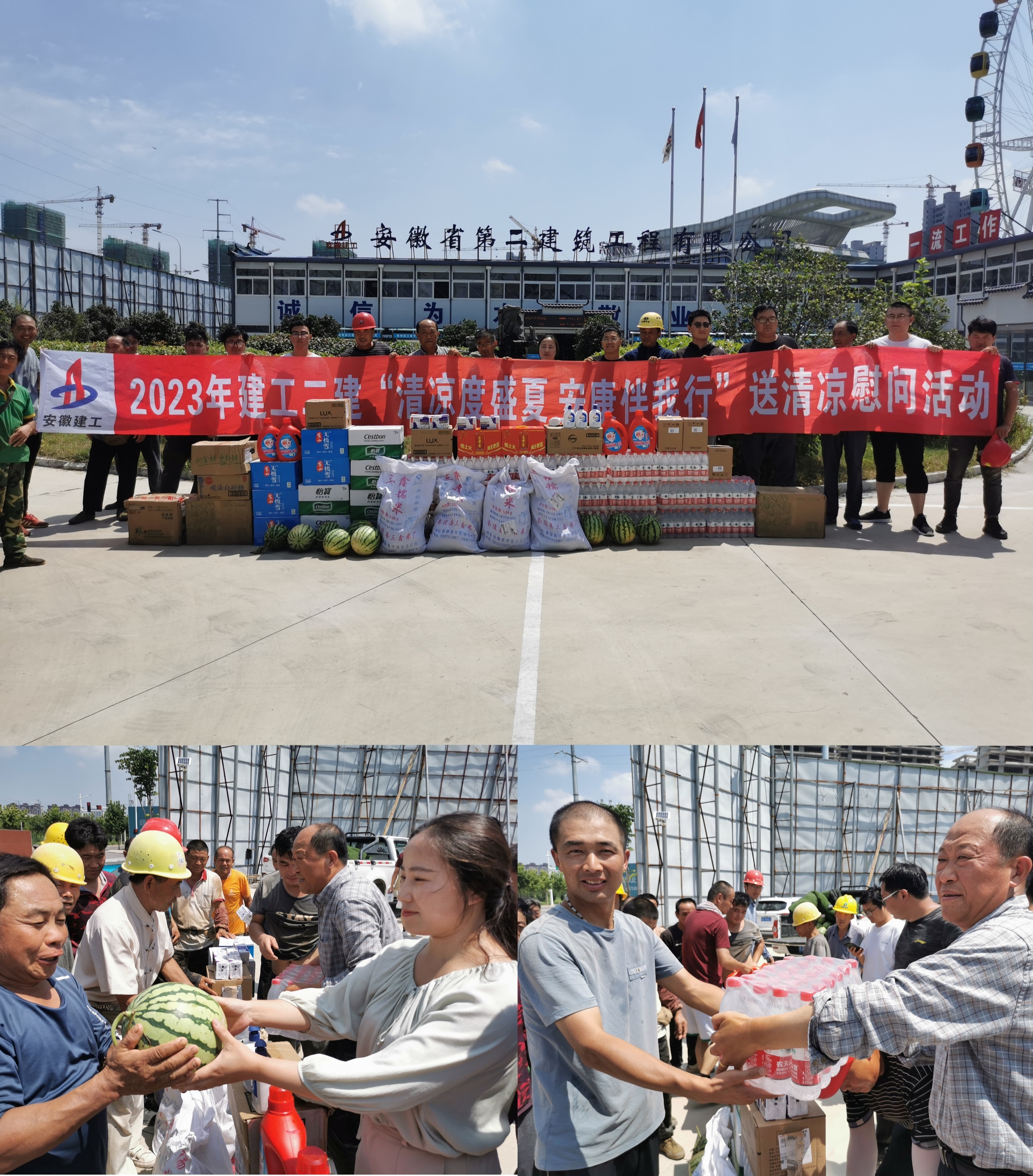 會后,為項目部一線職工發(fā)放“夏送清涼”物資。
