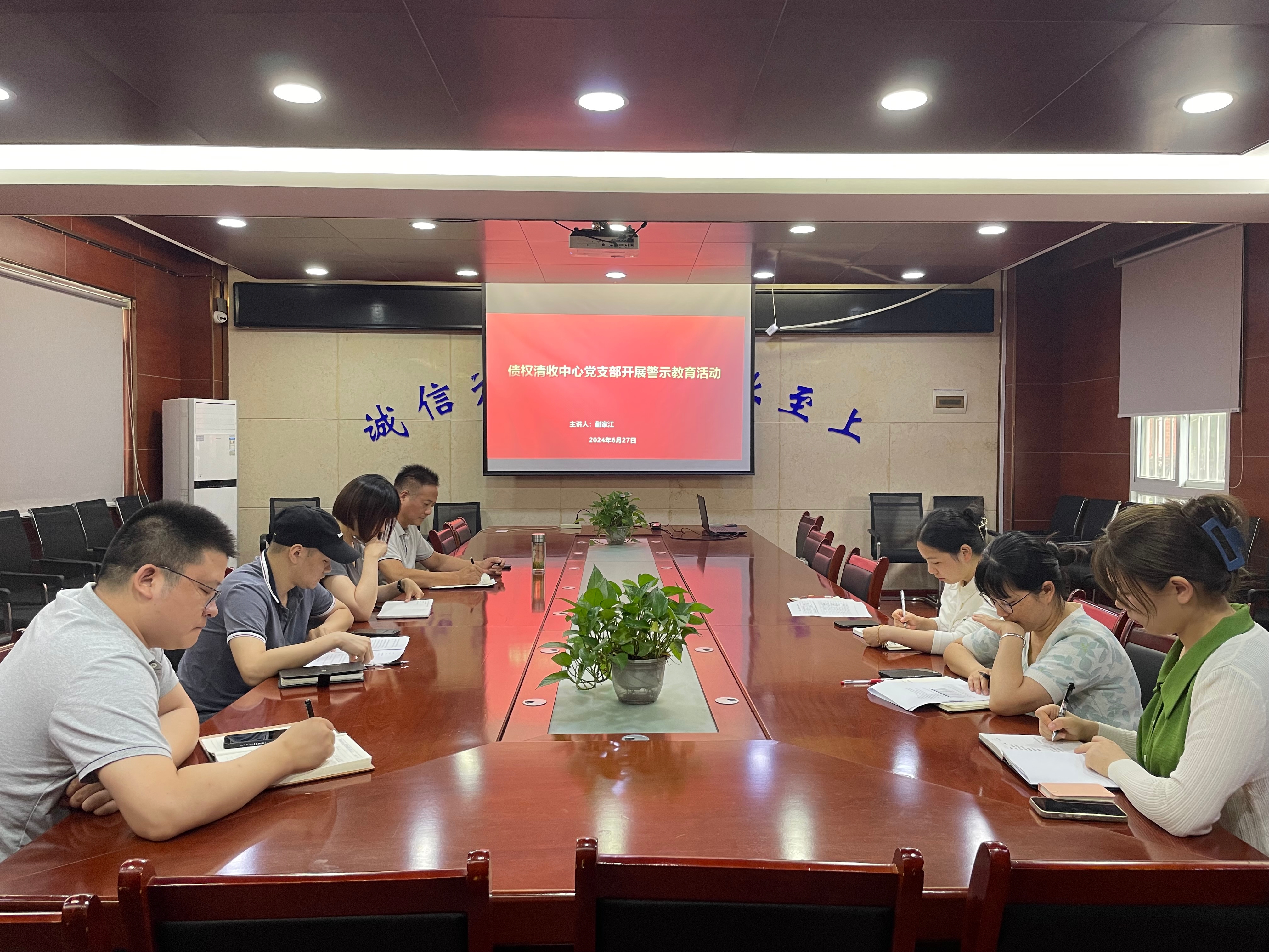 6月27日下午,債權(quán)清收中心黨支部開(kāi)展黨紀(jì)學(xué)習(xí)教育警示教育專(zhuān)題活動(dòng)。會(huì)議由公司總經(jīng)理助理、債權(quán)清收中心黨支部書(shū)記、主任蒯家江主持,債權(quán)清收中心全體職工參會(huì)。