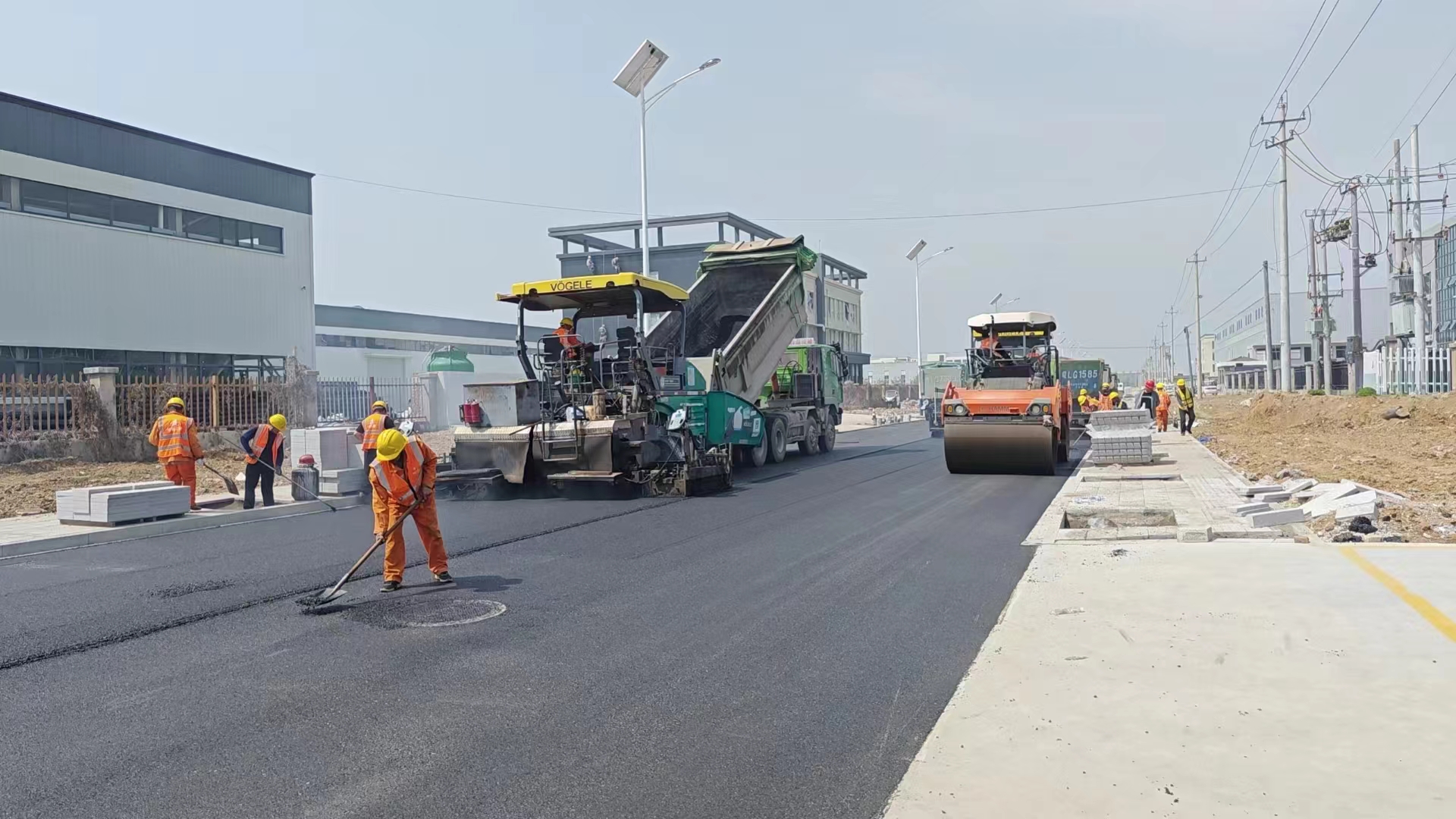 目前,錦江路、環(huán)溝路、閔北東路、閔南東路竣工驗(yàn)收完成;閔子大道中層瀝青攤鋪完成、路燈安裝完成,綠化施工完成95%;桃山路路基6%灰土施工完成、路面底基層12%灰土施工完成,k1+160-k2+130段雨水收集井及支管施工完成,水穩(wěn)攤鋪完成,k0+000-k1+160段第一層水穩(wěn)攤鋪完成,雨水收集管施工完成,人行道施工完成40%;淮海西路路面底基層12%灰土施工完成,雨水收集井及支管施工完成,水穩(wěn)攤鋪完成;人行道施工完成60%。施工現(xiàn)場(chǎng)呈現(xiàn)一派熱火朝天的勞動(dòng)景象。