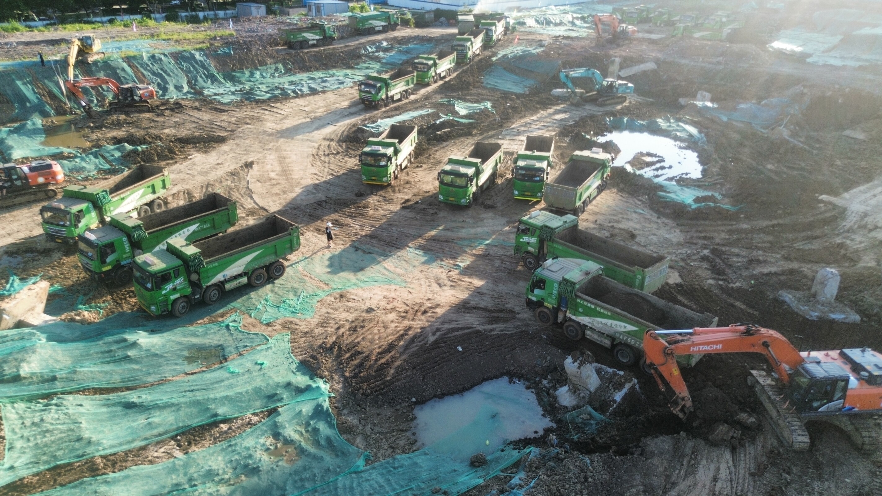 當(dāng)烈日遇上敬業(yè),當(dāng)高溫碰上責(zé)任,持續(xù)的高溫“烤”驗著堅守在一線人員的意志。入伏以來,氣溫不斷攀升,驕陽如火,項目管理人員克服高溫天氣等不利因素影響,起早貪黑,避開高溫時段,加班加點施工,高標(biāo)準(zhǔn)嚴(yán)要求落實每一道工序。截止7月底,一、二標(biāo)段土方開挖外運累計完成169380m3。