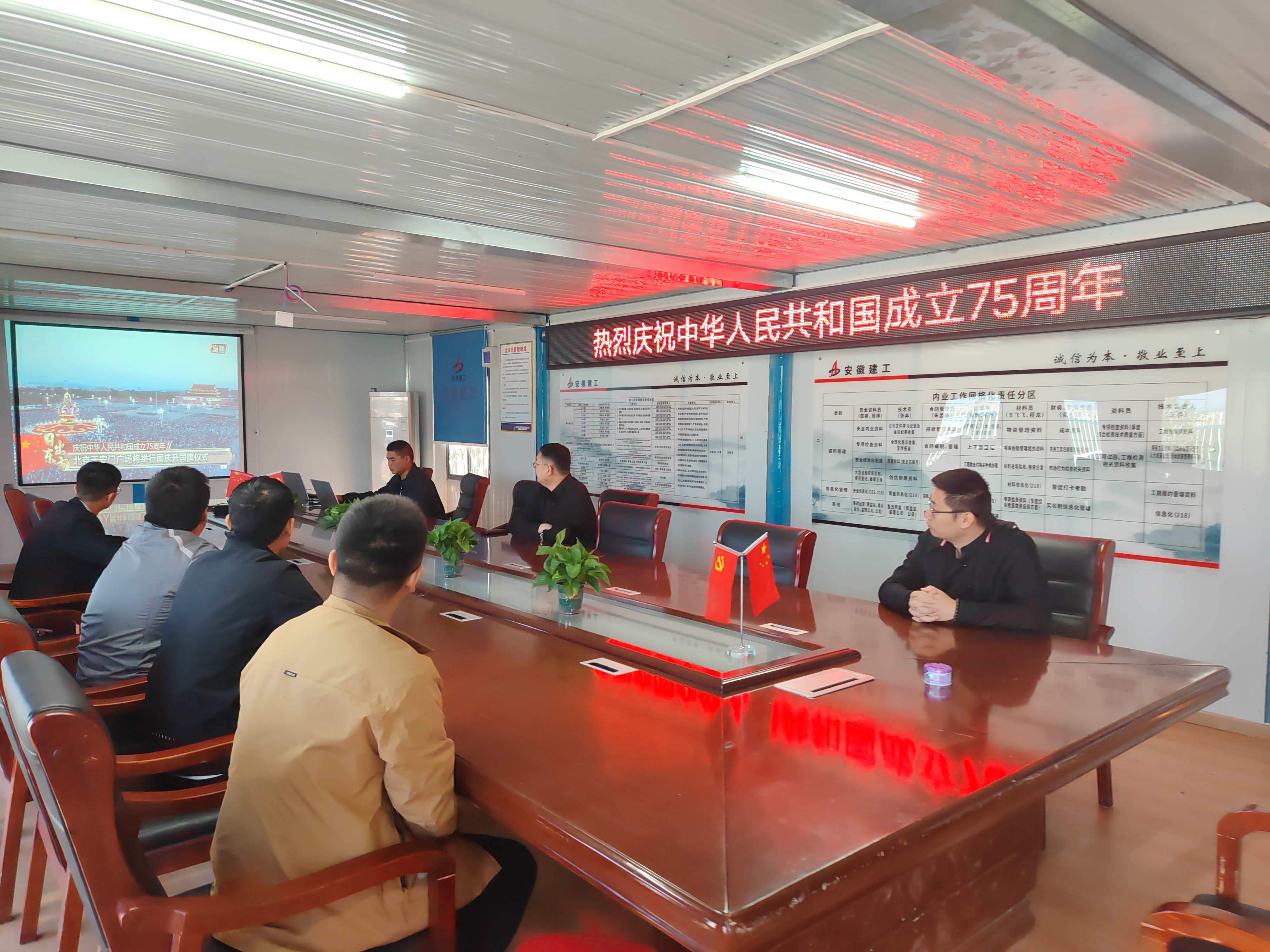 為慶祝中華人民共和國成立75周年,引導(dǎo)項(xiàng)目職工弘揚(yáng)愛國主義精神,近日,宿徐園區(qū)城鎮(zhèn)一體化AB地塊工程項(xiàng)目部組織開展了“七十五載逢盛世,同心共筑譜華章”系列迎國慶活動(dòng),組織職工集中觀看天安門升國旗儀式,在慶祝橫幅上為祖國寫下祝福語,開展“我與國旗合個(gè)影”活動(dòng)。