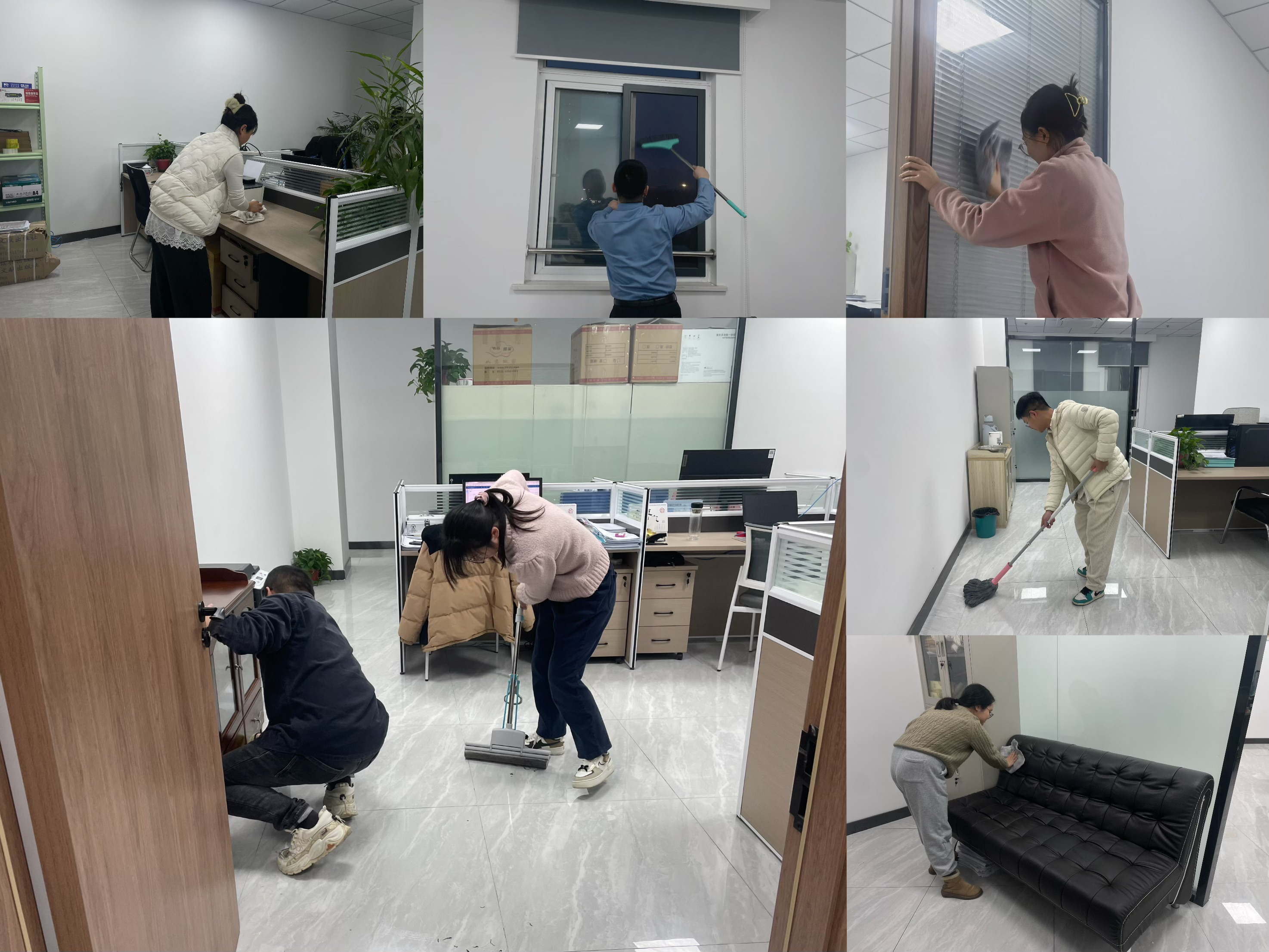 活動中,大家分工明確,配合默契。有的擦拭辦公設(shè)備,有的清掃地面,有的分類整理辦公用品、資料文件,還有的擦拭門窗,讓窗戶明亮通透,仿佛映照著新春的希望。經(jīng)過眾人共同努力,辦公區(qū)域煥然一新。
