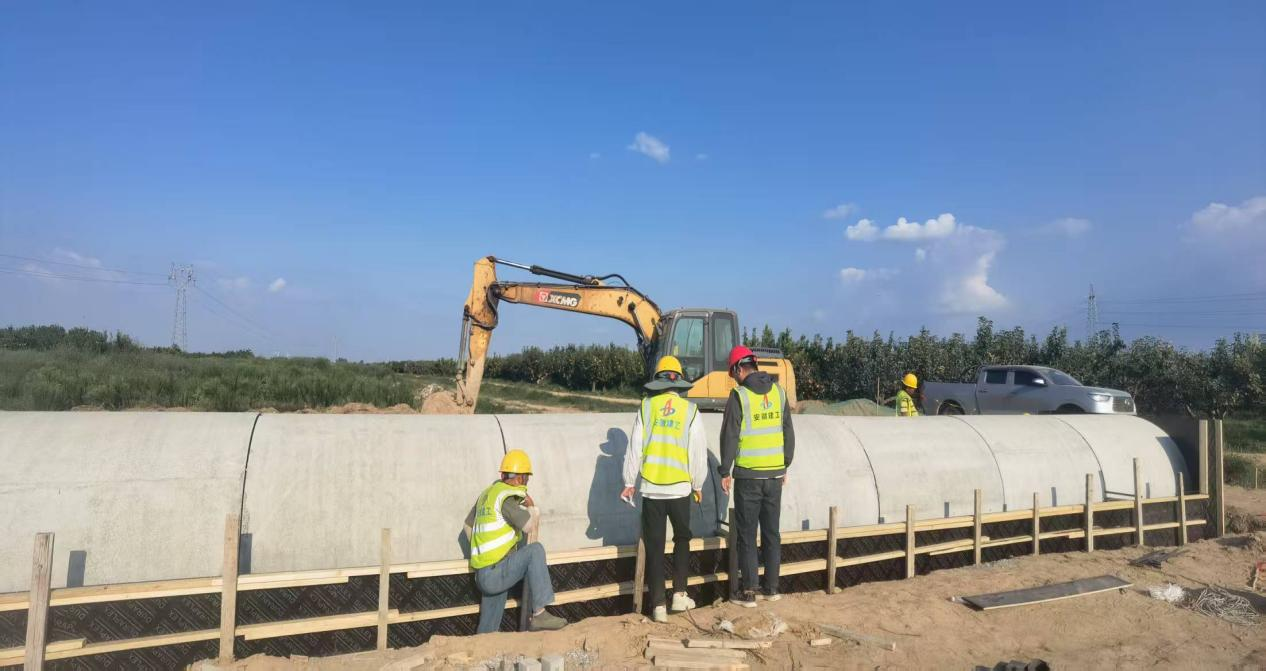 2025年7月,徐商路基02標段正式啟動圓管涵施工。本標段路線全長16.49km,共設橋梁19座,橋梁總長3959m。作為全線首個開展圓管涵施工的標段,在建設單位、監(jiān)理單位及施工單位全體人員的共同努力下,提前完成圓管涵施工方案的編制,并于近日順利完成K36+856.5處圓管涵施工任務。