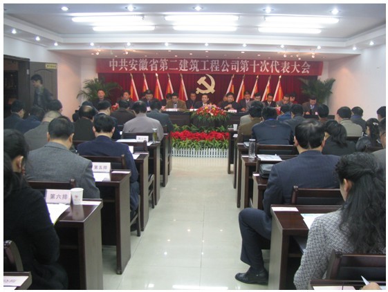 2010年11月25至26日,中共安徽省第二建筑工程公司第十次黨員代表大會隆重召開。來自生產(chǎn)一線、各部門、離退休支部等各個層面的72名黨員代表參加了大會,安徽建工集團有限公司黨委書記張海平、紀委書記、工會主席劉振武、黨委工作部主任吳曉武等出席大會開幕式。