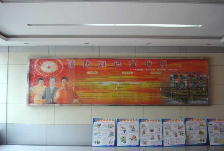 圖為公司辦公樓宣傳欄中的消防知識(shí)內(nèi)容