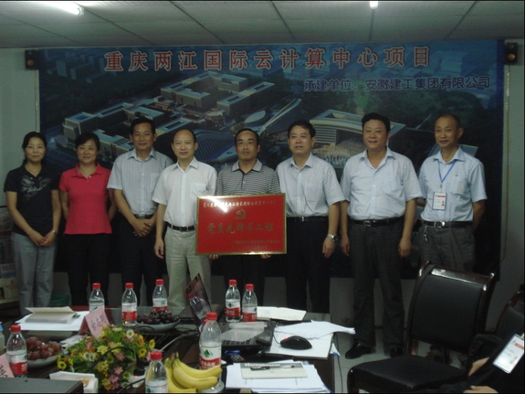 8月15日上午,集團公司總經(jīng)理、副董事長、黨委副書記趙時運,副董事長、黨委副書記李長斌,紀委書記、工會主席牛曙東,黨委工作部主任胡建英,工會女工委主任胡愛紅,辦公室副主任余志剛一行,在省二建公司總經(jīng)理戴樹明、副總經(jīng)理劉國良等陪同下,冒著40℃ 的高溫到重慶兩江國際云計算中心項目檢查指導工作,并為該項目“黨員先鋒號工程”授牌。