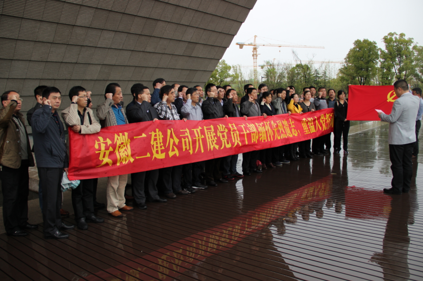 2015年4月2日,安徽二建黨委組織公司全體黨員干部共50人前往濱湖渡江戰(zhàn)役紀(jì)念館,開展主題為“黨員干部緬懷先烈遺志,重溫入黨誓詞,廉潔從業(yè)承諾”的教育實(shí)踐活動。