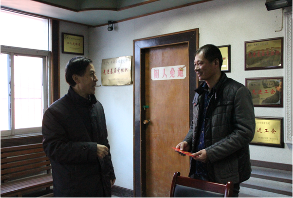 2017年1月16日下午,集團(tuán)公司總經(jīng)理劉家靜、工會主席徐曉光、工會副主席吳曉伍一行來到公司,開展春節(jié)前對困難職工的走訪慰問活動。公司黨委書記劉賢奇、工會主席李林等陪同慰問。