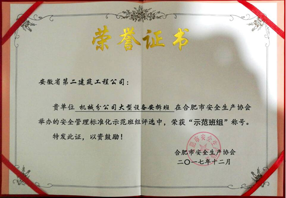近日在合肥市安全生產(chǎn)協(xié)會第二屆第三次會員大會上傳來喜訊,機(jī)械分公司大型設(shè)備安拆班榮獲“示范班組”榮譽(yù)稱號。本次評選活動由合肥市安全生產(chǎn)協(xié)會主辦,來自市內(nèi)數(shù)十家企業(yè)的近百個班組參與評選。