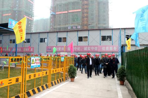 12月1日,安徽二建阜陽(yáng)大學(xué)城•紅街項(xiàng)目、安建楓林源筑項(xiàng)目施工現(xiàn)場(chǎng)舉行了在建項(xiàng)目現(xiàn)場(chǎng)觀摩會(huì)。活動(dòng)旨在深入推進(jìn)公司基礎(chǔ)管理深化年活動(dòng),充分發(fā)揮基層黨組織推動(dòng)發(fā)展、服務(wù)職工、凝聚人心、促進(jìn)和諧作用,使黨建工作更好地融入企業(yè)的生產(chǎn)經(jīng)營(yíng)管理之中,進(jìn)一步提高施工現(xiàn)場(chǎng)文明生產(chǎn)施工和安全質(zhì)量管理水平。公司黨委書記劉賢奇、副總經(jīng)理葉和永出席,所屬分公司黨支部書記、分管安全生產(chǎn)副經(jīng)理及安全科、綜合辦負(fù)責(zé)人、全體自營(yíng)項(xiàng)目項(xiàng)目經(jīng)理、安全負(fù)責(zé)人、項(xiàng)目黨支部負(fù)責(zé)人參加觀摩會(huì)。
