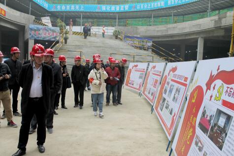 阜陽(yáng)大學(xué)城•紅街項(xiàng)目是公司創(chuàng)建黨員先鋒號(hào)的重點(diǎn)項(xiàng)目,項(xiàng)目自開建以來(lái),圍繞抓黨建促生產(chǎn)的根本目標(biāo),以黨群目標(biāo)責(zé)任書為抓手,不斷總結(jié)和創(chuàng)新項(xiàng)目黨建工作新思路、新方法。黨群工作組織機(jī)構(gòu)健全、活動(dòng)制度和目標(biāo)責(zé)任明確,各類標(biāo)識(shí)標(biāo)牌制作新穎、活動(dòng)開展盡然有序、各項(xiàng)資料整理規(guī)范。觀摩中,大家在現(xiàn)場(chǎng)負(fù)責(zé)人的介紹下,參觀了現(xiàn)場(chǎng)文化長(zhǎng)廊、黨建之窗、黨員活動(dòng)室、查看了創(chuàng)建材料,大家對(duì)項(xiàng)目黨建開展所取得的成績(jī)紛紛表示肯定。