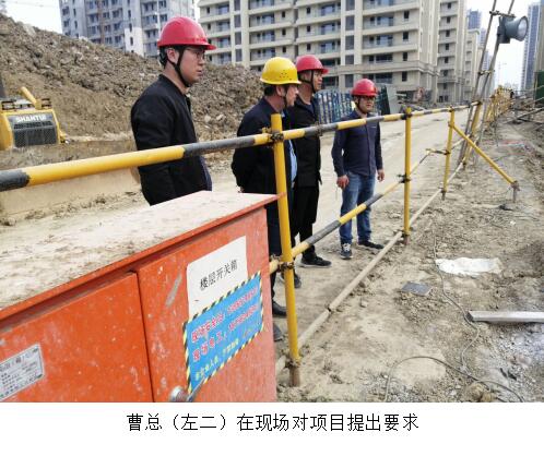 4月5日,公司安全總監(jiān)曹建前往文一塘溪津門項(xiàng)目檢查指導(dǎo)。在項(xiàng)目管理人員的陪同下查看了門衛(wèi)門禁系統(tǒng)、安全防護(hù)用品、大型設(shè)備機(jī)械、臨邊防護(hù)等情況,并對(duì)現(xiàn)場(chǎng)安全文明施工管理進(jìn)行了指導(dǎo)。