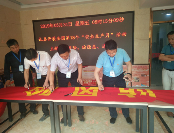 2019年5月31日,公司安全管理部、工會在公司大院舉行了全國第十八個“安全生產(chǎn)月”活動啟動儀式,公司機關全體職工參加??偨?jīng)理陸勤斌作啟動講話,指出安全生產(chǎn)工作的重要性和“安全生產(chǎn)月”活動的意義。分管安全副總經(jīng)理葉和永帶領全體職工進行了安全宣誓,隨后,在印有“安全生產(chǎn)月”主題“防風險 除隱患 遏事故”的橫幅上簽名。
