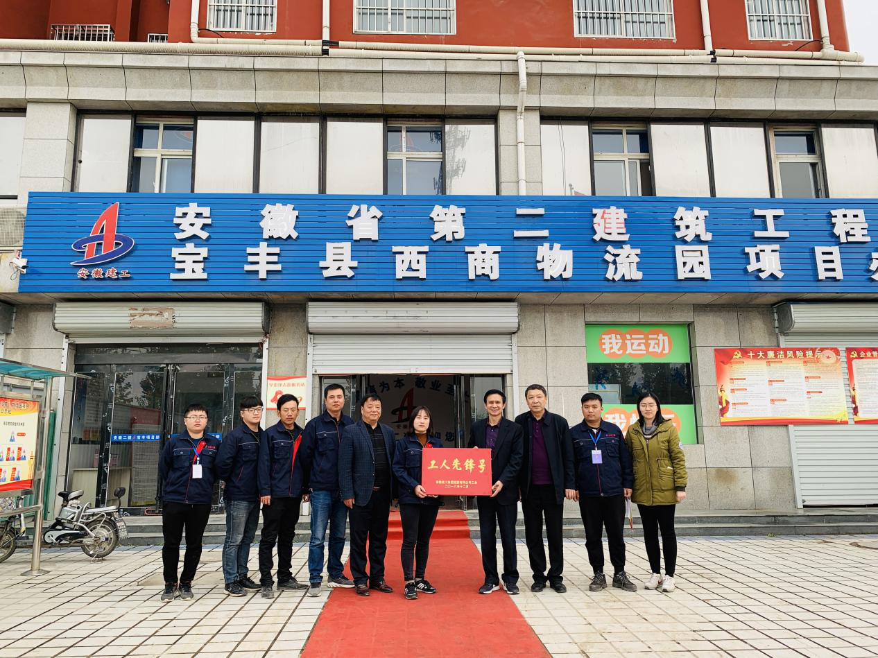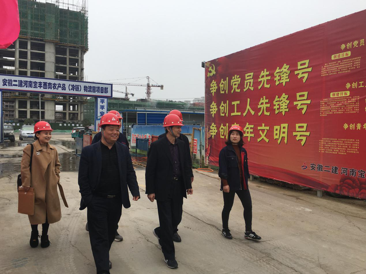 和煦的陽光溫暖愜意,細(xì)柔的春風(fēng)馨香滿懷,4月10日,建工控股工會副主席吳曉伍、安徽二建公司副調(diào)研員李林、四分公司黨支部書記董建民等一行5人,來到安徽二建河南寶豐西商農(nóng)產(chǎn)品(冷鏈)物流園項目現(xiàn)場驗收,并為項目“工人先鋒號”授牌。