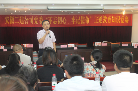 公司黨委副書記、紀委書記仇多維在點評講話中指出,此次知識競賽正當其時,對公司繼續(xù)開展“不忘初心、牢記使命”主題教育具有積極意義。一是本次競賽通過對黨史的回顧,讓廣大員工進一步了解共產(chǎn)黨人為中國人民謀幸福、為中華民族謀復(fù)興的偉大初心與使命。二是本次知識競賽也為公司年輕人搭建了一個展示自我、促進交流的良好平臺,希望青年員工勇?lián)鷼v史與時代使命,做好本職工作,為安徽二建公司的更好發(fā)展貢獻青春力量。三是提高思想認識,做好意識形態(tài)工作,維護國家統(tǒng)一與安全,堅守好國有企業(yè)意識形態(tài)陣地。