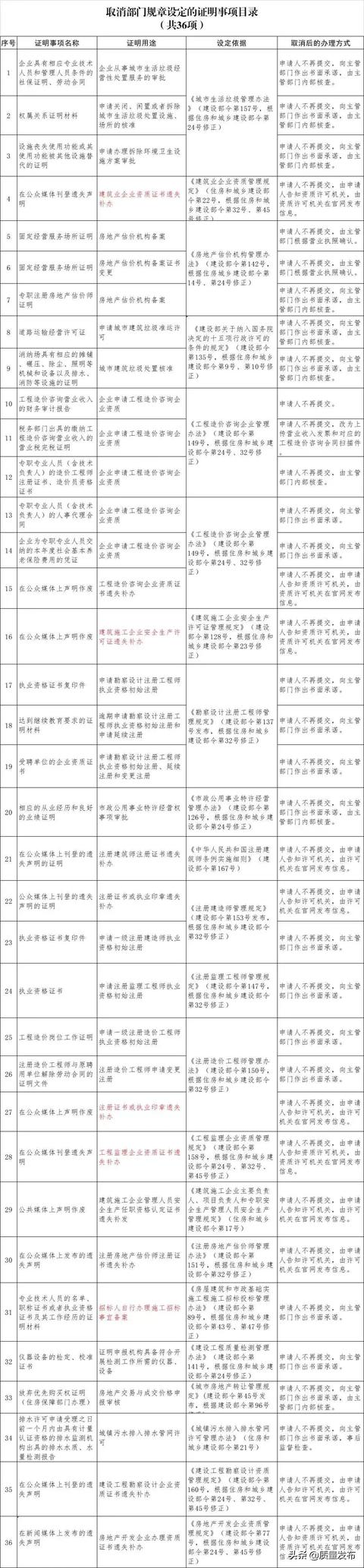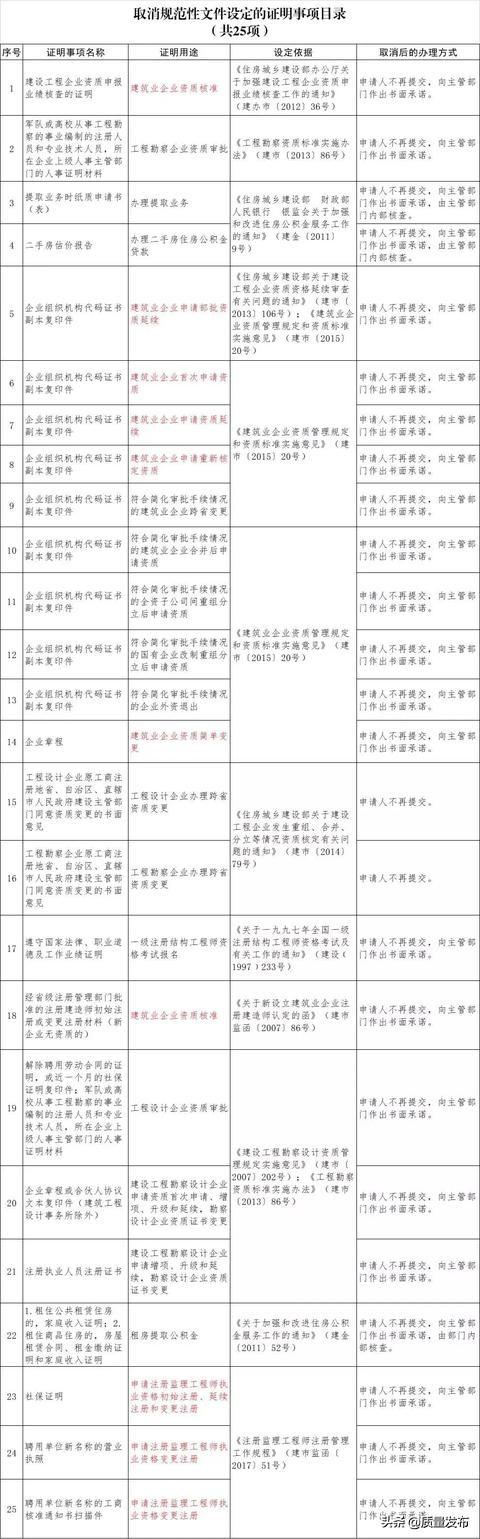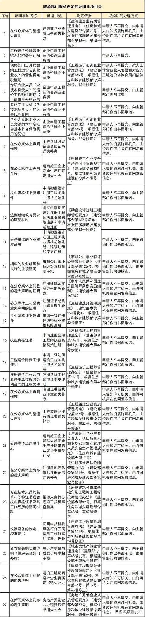 為貫徹落實黨中央、國務(wù)院關(guān)于減證便民、優(yōu)化服務(wù)的部署要求,住房和城鄉(xiāng)建設(shè)部決定取消部分部門規(guī)章和規(guī)范性文件設(shè)定的證明事項,相關(guān)證明事項自公布之日起取消。
