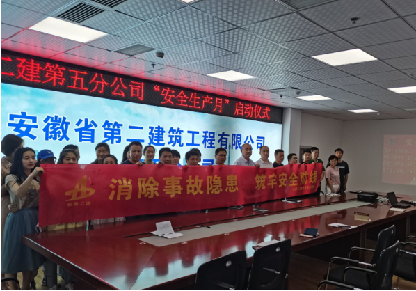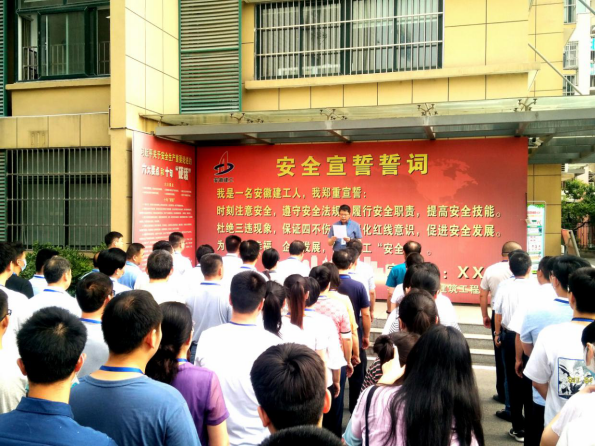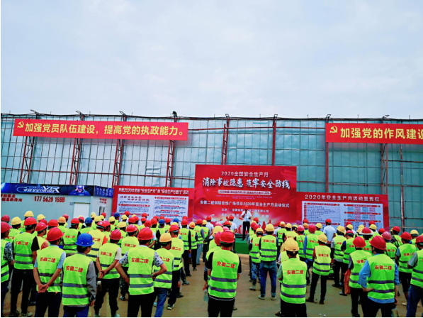 6月1日上午,安徽二建公司舉行了“安全生產(chǎn)月”啟動儀式,公司領(lǐng)導(dǎo)、機關(guān)全體職工100余人參加??偨?jīng)理陸勤斌作了講話,指出安全生產(chǎn)工作的重要性和“安全生產(chǎn)月”活動的意義,宣布2020年“安全生產(chǎn)月”活動正式啟動。全體職工在安全總監(jiān)曹建的帶領(lǐng)下進(jìn)行了安全宣誓,隨后,大家在印有“安全生產(chǎn)月”主題“消除事故隱患,筑牢安全防線”的橫幅上簽名。公司所屬各單位、各項目部同步開展了啟動儀式。