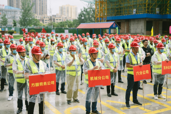 6月18日上午,安徽二建公司“戰(zhàn)疫情、搶工期、保目標、促超產(chǎn)”勞動競賽啟動儀式在淮北國金華府(紫麟苑)項目現(xiàn)場舉行?;幢笔凶〗ň痔瞥蔂I處長、副處長張喜明、質(zhì)監(jiān)站徐棟副站長、淮北市相山區(qū)住建局呂鵬宇局長、淮北國金置業(yè)有限公司董事長許偉應(yīng)邀出席儀式。公司領(lǐng)導(dǎo)班子成員、機關(guān)相關(guān)部門人員及所屬各單位主要領(lǐng)導(dǎo)、分管安全領(lǐng)導(dǎo)等共計150余人參加活動,工會女工主任王俊主持啟動儀式。