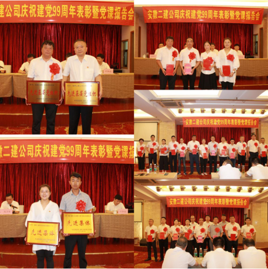 為隆重慶祝中國共產(chǎn)黨成立99周年,進(jìn)一步加強基層黨組織建設(shè)和黨員隊伍建設(shè),6月30日上午,安徽二建公司黨委召開慶祝建黨99周年表彰暨黨課報告會。公司領(lǐng)導(dǎo)、機關(guān)全體黨員、所屬單位領(lǐng)導(dǎo)班子成員(黨員)、受表彰的先進(jìn)基層黨組織代表、優(yōu)秀共產(chǎn)黨員、優(yōu)秀黨務(wù)工作者、新冠肺炎疫情防控工作先進(jìn)集體和先進(jìn)個人參加會議。會議由公司黨委副書記、紀(jì)委書記仇多維主持。