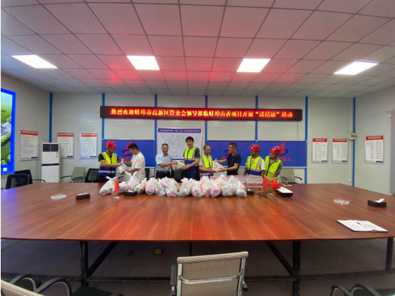 8月11日下午,蚌埠市高新區(qū)管委會韓永林,高新投資集團(tuán)、高新建發(fā)公司總經(jīng)理陳輝蒞臨安徽二建蚌埠山香安置房EPC項(xiàng)目開展“送清涼”活動(dòng),為項(xiàng)目送來了藿香正氣水、綠豆、菊花茶、花露水等防暑降溫物品。韓永林詢問了生產(chǎn)進(jìn)度、質(zhì)量安全施工以及高溫天氣項(xiàng)目部采取的防暑降溫措施等方面情況,同時(shí)要求,一定要確保高溫天氣下現(xiàn)場作業(yè)人員的安全,切實(shí)提高對一線作業(yè)職工的關(guān)心、關(guān)懷,避免 “非戰(zhàn)斗減員”情況發(fā)生,把安全放在首位,做到安全文明施工。