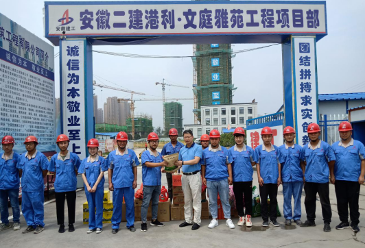 炎炎夏日,酷熱似火。8月12日,安徽二建公司總經(jīng)理陸勤斌,工會(huì)女工主任王俊一行蒞臨淮北國(guó)金華府(紫麟苑)、淮北恒基城安貞大廈、淮北港利文庭雅苑項(xiàng)目開(kāi)展2020年“送清涼”活動(dòng)。
