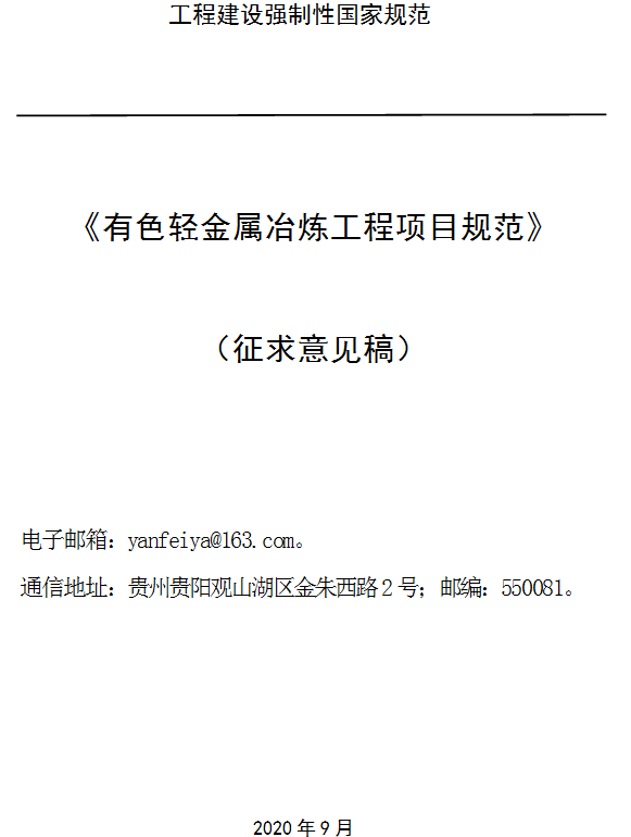 《有色輕金屬冶煉工程項(xiàng)目規(guī)范(征求意見稿)》