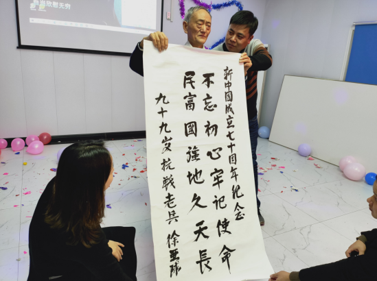 31日下午,項目職工包起一盤盤熱氣騰騰的餃子,歡迎前來參加晚會的嘉賓。晚7點半,聯(lián)歡會正式拉開帷幕。首先,支部書記董建民致辭,對全體干部職工一年來為項目的發(fā)展所做出的貢獻和努力表示肯定和感謝,并向廣大職工及其家屬送上了新年的美好祝福。晚會過程中,由項目部女員工編排的舞蹈《浪漫櫻花》令人贊嘆,機關(guān)員工李丹然的魔術(shù)表演《新貴妃醉酒》讓人驚喜連連,由安徽省新四軍歷史研究會淮海委員會征修、周芳琴聯(lián)袂出演的小品《賣菜》令人捧腹大笑,《成都》、《一生所愛》、《隱形的翅膀》等歌曲串燒給大家獻上了一場視聽盛宴,朗誦《回家過年》營造出濃濃的節(jié)日氛圍。聯(lián)歡現(xiàn)場,背夾氣球、比劃猜謎等游戲更是掀起一波又一波的高潮。接近尾聲時,張振山會長帶來了安徽省新四軍歷史研究會淮海委員會原會長徐亞球的一副珍貴的書法,并祝愿安徽二建公司蓬勃發(fā)展、再創(chuàng)輝煌!