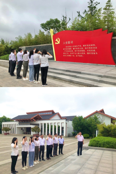 隨后,大家沿著紅色足跡來到了沈浩同志先進事跡陳列館,現(xiàn)場認真聆聽了沈浩同志的先進事跡,在他擔任村領導的六年中,他深入群眾、拉近距離、調(diào)研走訪、摸清村情,用心融入到小崗村。在為小崗村脫貧致富忙碌奔波中,三過家門而不入,吸引大學生進村創(chuàng)業(yè)、招商引資辦工業(yè)、開發(fā)旅游促三產(chǎn)等一系列措施,使得小崗村村民生活水平顯著提高,文化生活豐富多彩,精神面貌煥然一新。在學習沈浩同志先進事跡時,大家無不為沈浩扎根小崗、克己奉公、干事創(chuàng)業(yè)的崇高品質(zhì)所感動,更加明白了為什么他能成為小崗村鄉(xiāng)親們?nèi)伟聪录t手印留下的好干部、人民好公仆。在陳列館門前,黨員面對鮮紅的黨旗,重溫入黨誓詞,莊嚴宣誓。
