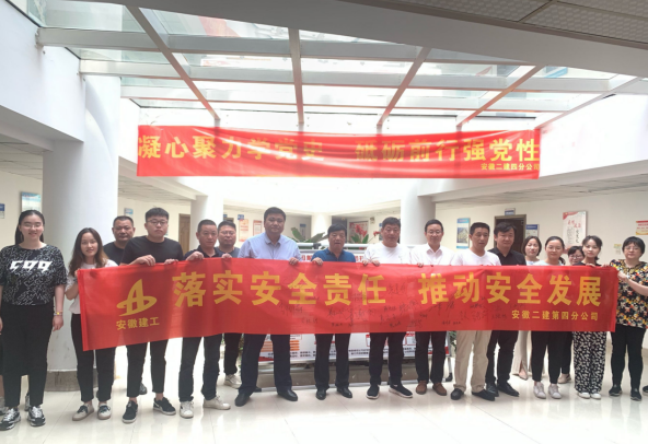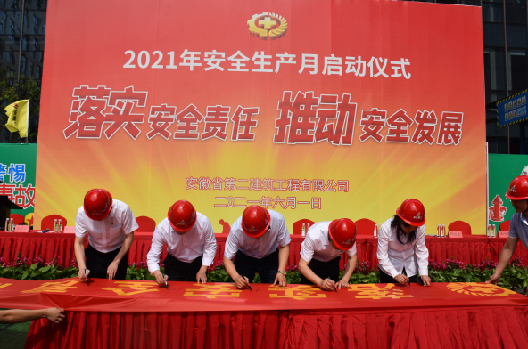 6月1日上午,安徽二建公司在六分公司文一春風里項目舉行“安全生產月”啟動儀式,公司安委會成員,安全管理部、工會全體人員,所屬各單位分管安全、質量副經(jīng)理、安全科長,在肥項目經(jīng)理共百余人參加。