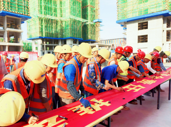 上午8點30分活動開始,活動由副總經(jīng)理葉和永主持。全體職工在安全總監(jiān)曹建的帶領下進行了安全宣誓。隨后,安全管理部副主任賈賢財組織大家進行安全承諾簽名、安全咨詢及消防應急救援演練活動。公司所屬各單位、項目部也同步開展了啟動儀式。
