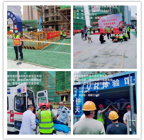 此次觀摩會(huì)由鳳臺(tái)縣住房城鄉(xiāng)建設(shè)局聯(lián)合鳳臺(tái)縣淮州置業(yè)有限責(zé)任公司、合肥市工程建設(shè)監(jiān)理有限公司、安徽二建斌峰江山印項(xiàng)目聯(lián)合組織開展,應(yīng)急綜合演練活動(dòng)包含“消防應(yīng)急救援”、“高空墜物”、“觸電事故”、“疫情防控”四個(gè)演練項(xiàng)目,由鳳臺(tái)江山印項(xiàng)目部各救援小組成員及藍(lán)天救援隊(duì)共20余人參加演練,縣住建局安監(jiān)站及縣應(yīng)急管理局、縣內(nèi)施工和監(jiān)理企業(yè)負(fù)責(zé)人及項(xiàng)目人員120余人參加了現(xiàn)場(chǎng)觀摩。