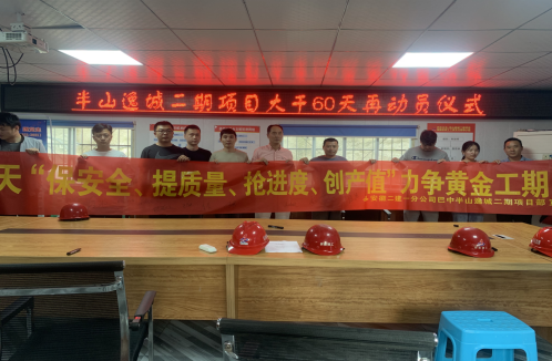 巴中半山逸城二期項目為實現(xiàn)分公司半年度“時間過半、任務過半”的目標,有效搶抓5至6月施工黃金期。自2021年4月26日至6月25日開展以“保安全、提質量、搶進度、創(chuàng)產(chǎn)值”為主題的“大干60天”勞動競賽。