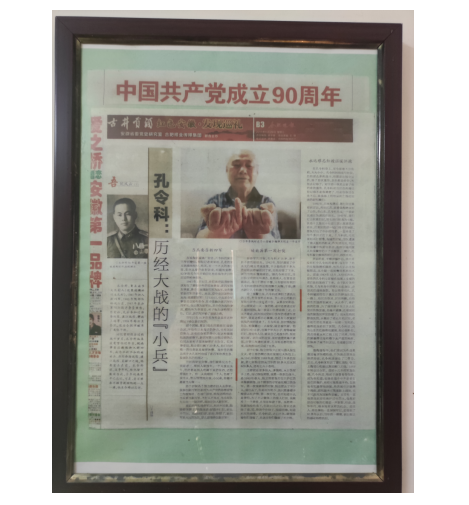 孔令科老人,1926年出生,1941年參軍入伍, 1946年加入中國共產黨,14歲加入新四軍,戎馬生涯中參加過抗日戰(zhàn)爭和解放戰(zhàn)爭,多次立下二等功。在講起那段槍林彈雨、戰(zhàn)火紛飛的革命年代時,他不免有些激動。令我們印象最深的是在戰(zhàn)爭中有五顆手榴彈滾到了他的腳下,幸運的是只有一顆爆炸了,導致右腿右臂受重傷,多處留有彈片。如今95歲高齡的孔老,身體硬朗、思維清晰,始終保持著每天讀書看報的好習慣,在靜享慢讀中,沉淀出生活的安靜與從容。如今的和平時代是無數(shù)革命先烈用鮮血和生命換來的,沒有他們浴血奮戰(zhàn),何來祖國今日繁榮昌盛?臨走前,滿頭銀發(fā)的孔老不斷重復著:“你們生在好時代,大家都年輕,一定要多讀書多學習”。