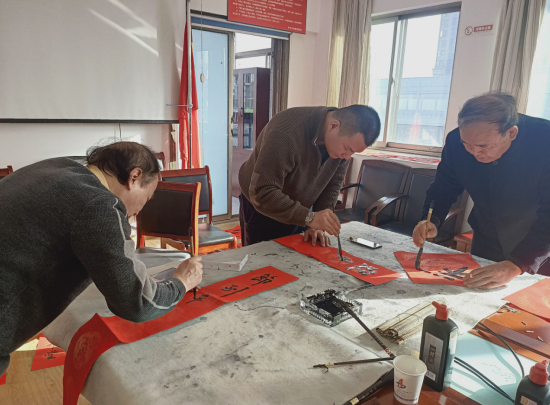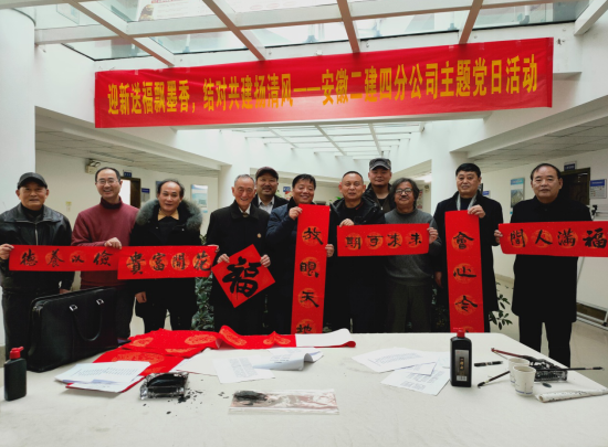 春節(jié)臨近,為營造喜慶、祥和、熱烈的新春氛圍,豐富分公司文化內(nèi)涵,弘揚中華優(yōu)秀傳統(tǒng)文化。1月29日下午,安徽二建四分公司黨支部組織開展“迎新送福飄墨香,結(jié)對共建揚清風”寫春聯(lián)送祝福主題黨日活動?;顒友埩税不帐⌒滤能姎v史研究會淮海委員會會長張振山、副會長楊承愉,安徽省書法家協(xié)會會員牛中民、朱良謀等一行現(xiàn)場揮毫寫春聯(lián),分公司機關(guān)近30余人參加了活動。