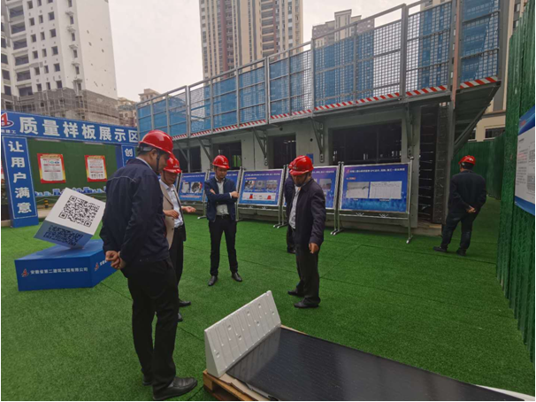 蚌埠山香安置房項目自開工初期,就確定了爭創(chuàng)集團、市級、省級安全文明標準化示范工地目標。專家評審組成員對項目現(xiàn)場安全文明施工、安全防護、施工用電、大型設(shè)備安裝維護、高處作業(yè)、揚塵防治以及裝配式預(yù)制構(gòu)件吊裝的安全保證措施等方面進行了全面檢查驗收。隨后,評審專家組在會議室認真聽取了項目負責人就目標管理、施工現(xiàn)場安全文明管理、安全文明工作體系建設(shè)、信息化建設(shè)等方面的匯報。專家組對項目安全文明標準化建設(shè)成果給予了充分肯定,對驗收過程中存在的問題和不足進行了精心指導,希望項目部積極在預(yù)制裝配式建造領(lǐng)域不斷探索,深入學習總結(jié)。