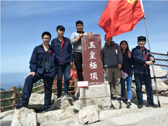 登山小隊(duì)在團(tuán)旗的引領(lǐng)下,從堯山腳下向玉皇山頂進(jìn)發(fā)。登山途中,大家一邊欣賞美麗的風(fēng)景,盡情享受新鮮的空氣和明媚的陽光,一邊聊天,暢談著戶外活動(dòng)的愉悅感受。經(jīng)過近兩個(gè)小時(shí)的奮進(jìn),在不斷的互相勉勵(lì)、加油鼓勁下,登上了峰頂,并合影留住這美好的瞬間。