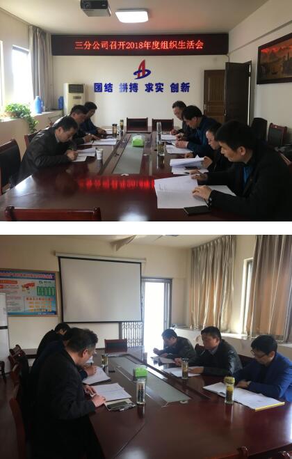 3月28日下午,三分公司在五樓會議室召開2018年度組織生活會,公司黨委副書記、紀委書記仇多維、公司總工程師邱立龍,黨委工作部主任施用宏到會指導,會議由支部書記陳習武主持,分公司領(lǐng)導班子全員參會。