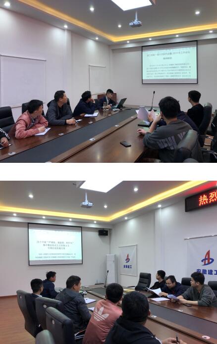 3月18日晚上,文一·塘津門五標段項目組織召開《建工控股一屆六次職代會暨2019年工作會議》 《關(guān)于開展“嚴規(guī)矩、強監(jiān)督、轉(zhuǎn)作風(fēng)”集中整治形式主義官僚主義專項行動實施方案》專題學(xué)習(xí)會,會議由項目經(jīng)理蒯聲文主持,項目部全體員工參會。