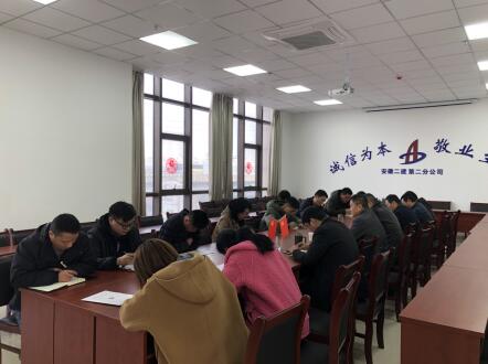 支部書記黃業(yè)云帶領大家學習了《關于印發(fā)<安徽二建公司堅決打好防范化解重大風險攻堅戰(zhàn)工作方案>的通知》文件精神,并對公司3月8日召開的堅決打好防范化解重大風險攻堅戰(zhàn)動員部署會議精神進行了宣貫。會上根據(jù)《安徽二建第二分公司堅決打好防范化解風險攻堅戰(zhàn)工作方案》的工作部署,要求各科室及項目部思想上高度重視,防范化解重大風險工作要抓細抓實,結(jié)合工作實際,梳理重大風險源,明確到人,責任到人,項目部按照分公司文件時間節(jié)點要求,形成書面材料上報至分公司對口科室。