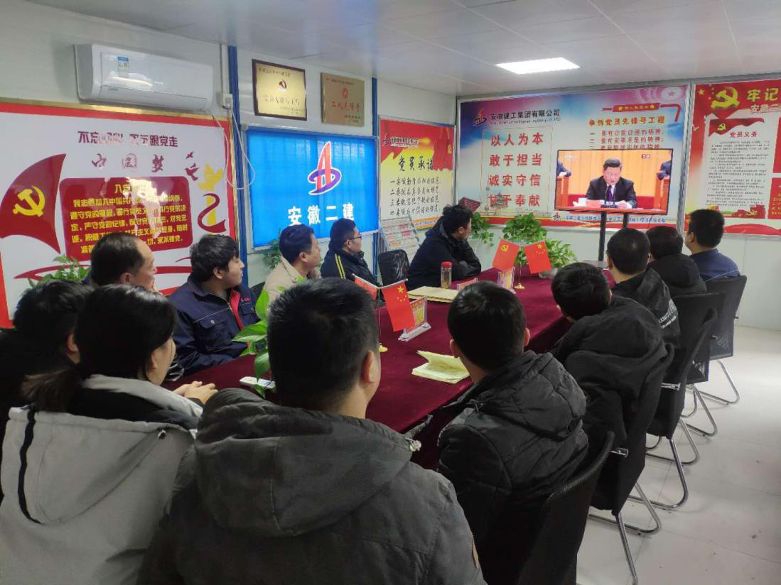 2018年12月18日,慶祝改革開放四十周年大會(huì)在北京召開。一分公司舒城遠(yuǎn)大中央公園一期B標(biāo)段項(xiàng)目黨支部組織黨員及青年團(tuán)員集中收看大會(huì)的實(shí)況直播。
