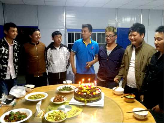 10月11日晚上,項(xiàng)目部舉行了一次特殊的聚會(huì),大家共同舉杯為項(xiàng)目質(zhì)檢科科長(zhǎng)施若愚慶祝生日,將一句句祝福,一份份真誠(chéng)送到他的心坎里。