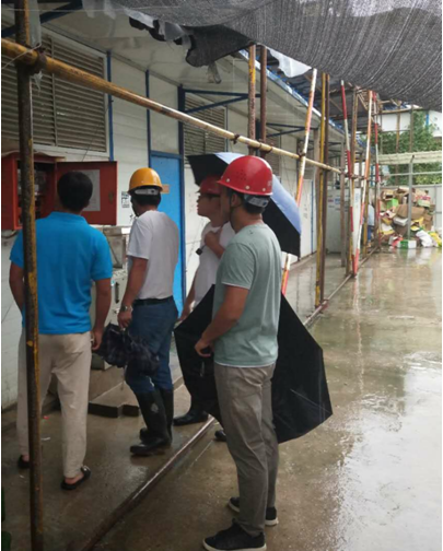 一是停止一切施工作業(yè),立即對施工現(xiàn)場的作業(yè)工人進行全部撤離,并將活動板房內(nèi)的人員全部疏散,同時和勞務(wù)班組核實撤離情況。二是組織項目部管理人員對施工現(xiàn)場的機械設(shè)備、臨時用電、安全防護棚、排水系統(tǒng)等和生活區(qū)活動板房進行全面隱患排查,立刻采取有效的防范措施,確保工地安全。三是密切監(jiān)視臺風(fēng)動態(tài),安排值班人員處置突發(fā)情況。