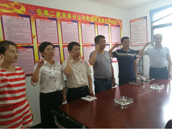 不忘初心,重溫入黨誓詞。分公司6名黨員及入黨積極分子重溫入黨誓詞,通過莊嚴(yán)的儀式,提醒黨員干部時(shí)刻謹(jǐn)記黨旗下的承諾,踐行黨章要求。