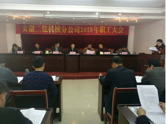 大會(huì)聽取并審議通過了《機(jī)械分公司工作報(bào)告》、《機(jī)械分公司財(cái)務(wù)工作報(bào)告》、《分公司2017年度業(yè)務(wù)招待費(fèi)使用情況報(bào)告》。分公司工作報(bào)告全面總結(jié)了2017年生產(chǎn)經(jīng)營管理工作,對(duì)2018年經(jīng)營發(fā)展形勢(shì)進(jìn)行研判,明確提出了分公司2018年度工作目標(biāo)和工作重點(diǎn)。報(bào)告指出,2018年是全面貫徹黨的十九大精神的開局之年,是改革開放40周年,是決勝全面建成小康社會(huì)、實(shí)施“十三五”規(guī)劃承上啟下的關(guān)鍵一年,也是我們二建公司全面復(fù)興的決勝之年。2017年度機(jī)械分公司在公司各級(jí)領(lǐng)導(dǎo)的關(guān)懷和指導(dǎo)下,堅(jiān)持安全生產(chǎn),努力完成公司年度經(jīng)濟(jì)指標(biāo),凝心聚力,克服工作中的各種困難,確保機(jī)械設(shè)備安拆的安全和質(zhì)量,在資金緊張,收款困難的前提下,完成了年初公司制定的各項(xiàng)經(jīng)濟(jì)指標(biāo)。