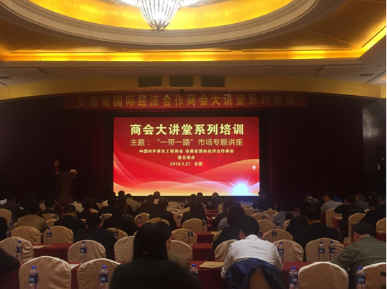 3月27日,安徽二建四分公司黨支部書記董建民等3人應邀參加了在外經戴斯酒店舉辦的安徽省國際經濟合作商會大講堂系列培訓,本次培訓由中國對外承包工程商會與安徽省國際經濟合作商會聯合舉辦,此次培訓為期兩天,以“一帶一路”市場為主題,近300人參加培訓活動。
