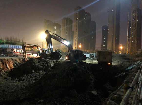 一年之季在于春。為確保楓林源筑直屬項目2018年生產(chǎn)工作開好頭、起好步。2月23日,年味依在,項目部積極組織開展復工工作,消除節(jié)后綜合癥,以飽滿的精神投入到緊張而有序的工作中。經(jīng)過項目部統(tǒng)籌安排,2月25日上午,施工現(xiàn)場5臺大型挖掘機,30輛自卸車,進行7#、12#樓土方開挖,9#樓二層墻柱鋼筋綁扎也在有條不紊進行中,施工現(xiàn)場人頭攢動,機械轟鳴,標志著節(jié)后復工已全面啟動。