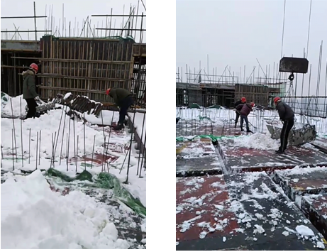 隨著“大干60天生產(chǎn)競(jìng)賽”的圓滿結(jié)束,宿州市于元月4日迎來(lái)了第一場(chǎng)大范圍強(qiáng)降雪。持續(xù)了兩天的大雪使整個(gè)宿州籠罩在一片白色之中,道路全部被阻斷,現(xiàn)場(chǎng)施工也一度停滯。為做好極端天氣下建筑施工的安全生產(chǎn)工作,一方面項(xiàng)目部緊急成立應(yīng)急小組,對(duì)暴雪造成的安全隱患進(jìn)行全面排查,尤其對(duì)生活區(qū)、樓層外架、現(xiàn)場(chǎng)臨時(shí)用電、起重設(shè)備等進(jìn)行專項(xiàng)檢查,及時(shí)清理積雪、消除隱患;另一方面為保證雪后施工的正常開(kāi)展,項(xiàng)目部動(dòng)員管理人員對(duì)樓頂現(xiàn)澆面的積雪進(jìn)行清理,為下一步的安全生產(chǎn)提供及時(shí)的工作面。