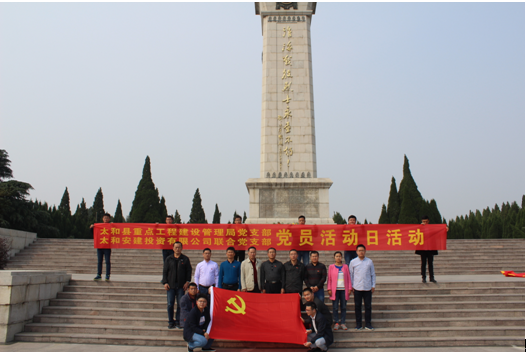 紅色之旅途中,太和安建投資有限公司聯(lián)合黨支部書記高偉發(fā)起了黨員和入黨積極分子共同參與的組織生活會,從思想、黨性認(rèn)識上對黨員和入黨積極分子進(jìn)行了重大洗禮。太和縣委辦副主任、太和縣重點(diǎn)局苗玉勇給本次活動致辭,并給紀(jì)念碑獻(xiàn)花藍(lán),接著薄局帶領(lǐng)我們重溫入黨誓詞,積極學(xué)習(xí)黨的歷史、黨的知識。